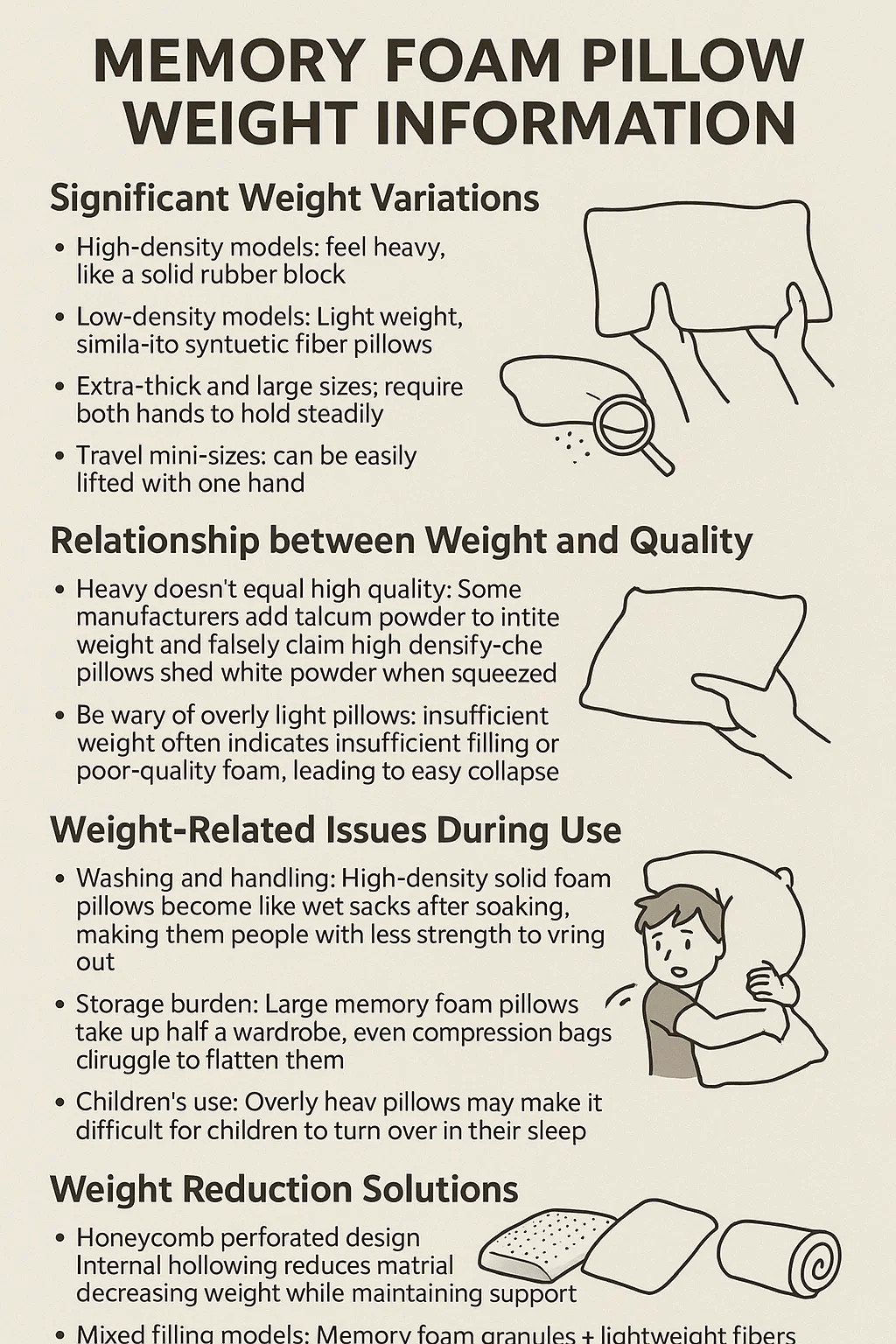 Tenga cuidado con las almohadas demasiado ligeras: un peso insuficiente a menudo indica un relleno insuficiente o una espuma de mala calidad, lo que provoca un fácil colapso.