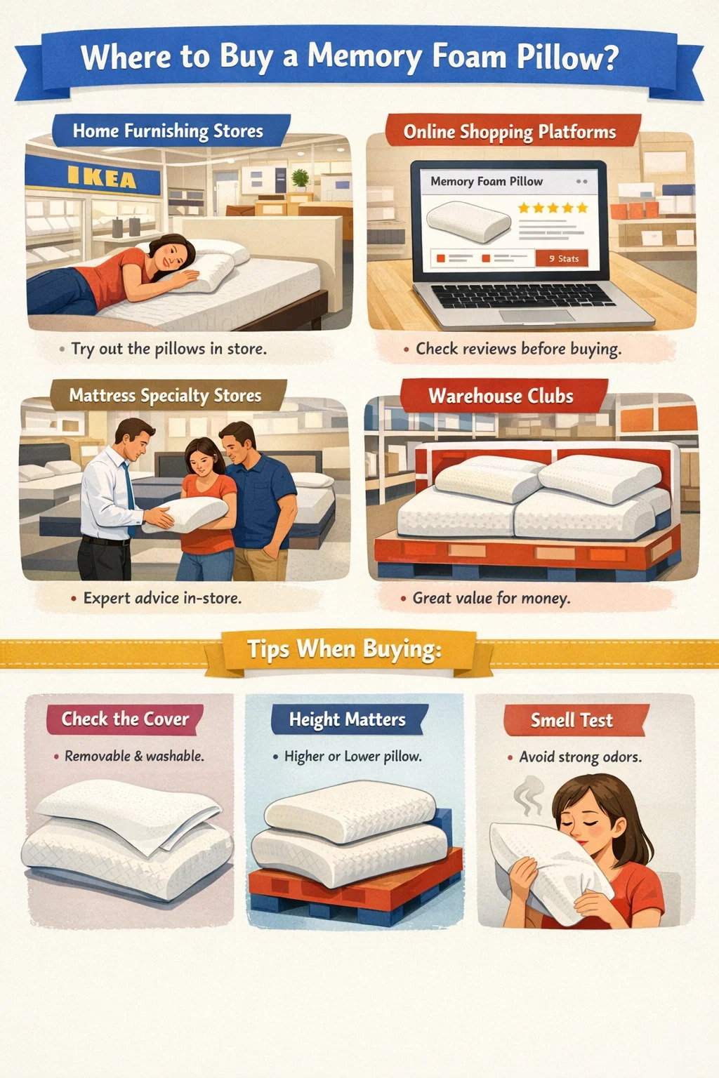 Si estás pensando en comprar una almohada viscoelástica, hay muchos lugares donde puedes encontrarla. Sin embargo, los diferentes canales de compra tienen sus propias ventajas y desventajas. Para ayudarte a encontrar el más adecuado, aquí tienes algunos lugares habituales para comprarlos y algunas sugerencias: